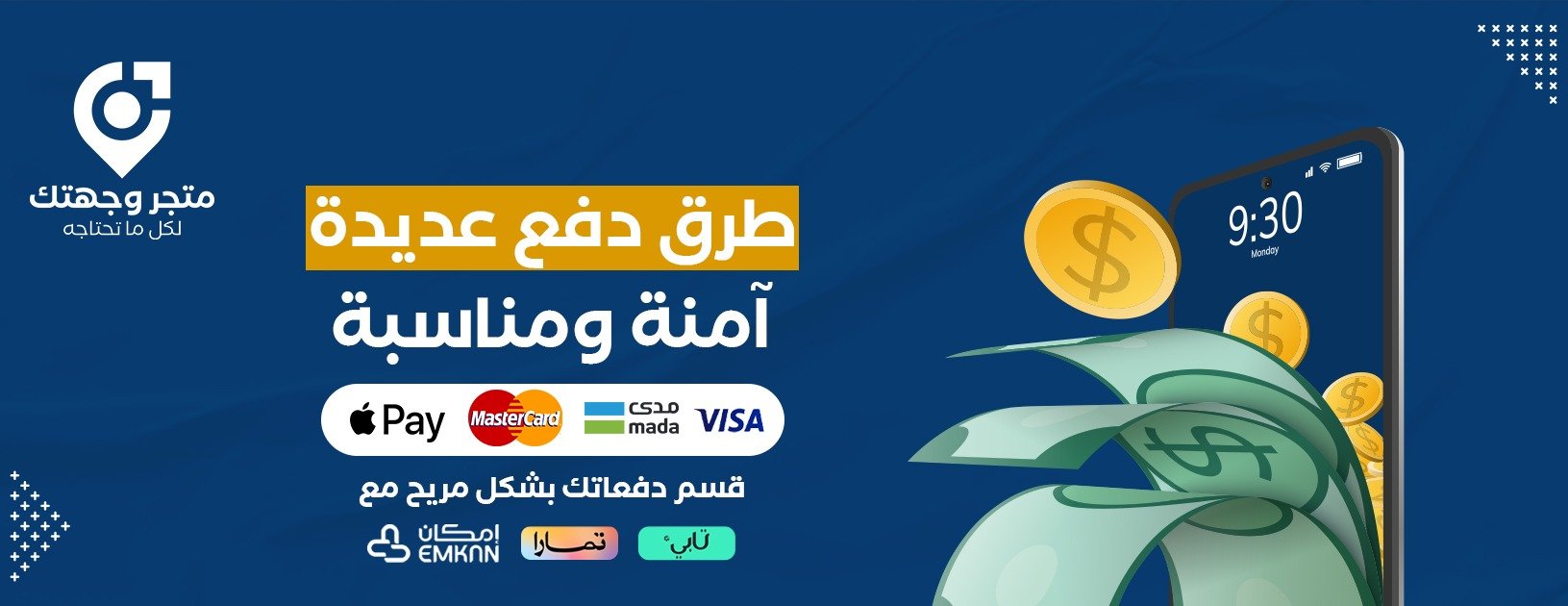 نوفر عدة خيارات آمنة للدفع، تشمل بطاقات الائتمان (فيزا/ماستر كارد)، التحويل البنكي، الدفع عبر مدى، وذلك لتوفير تجربة تسوّق مريحة وسلسة لكل عملائنا.